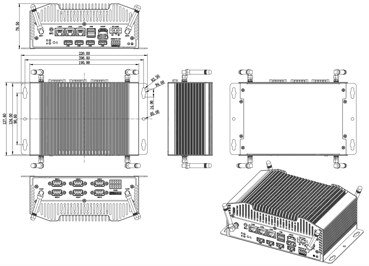 6*USB; RST; Remote SW; 2*ANT; LED(PWR,HDD) |
