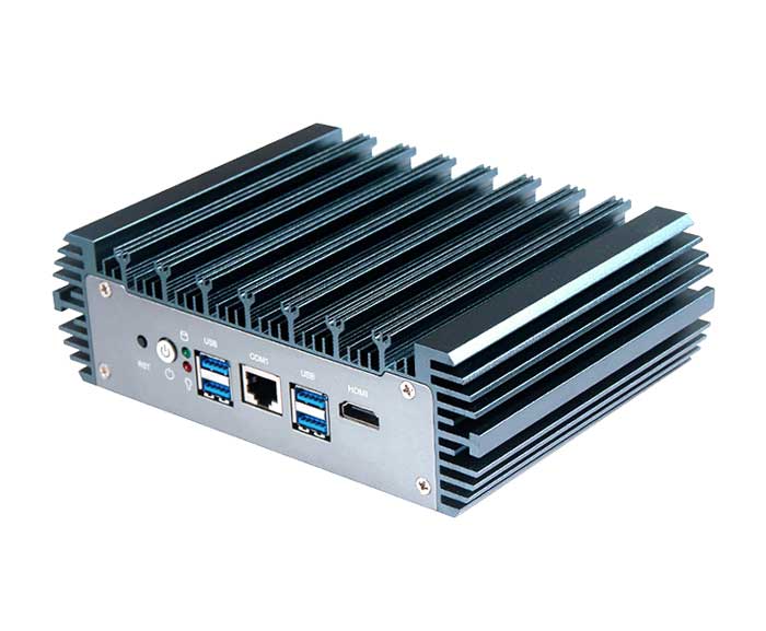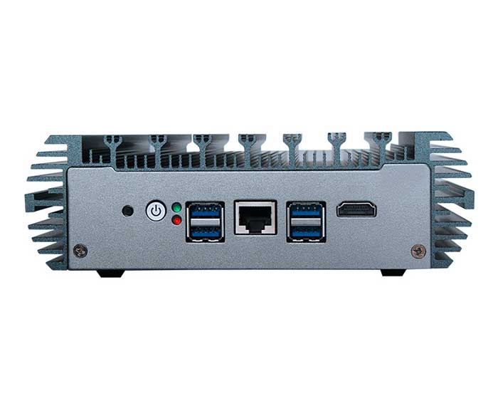 ◆ All-aluminum body, fanless and cable-free design; ◆ Support Alder Lake-N series processors; ◆ 1 x DDR5 SO-DIMM, total maximum 16GB; ◆ HDMI display, RS232 CONSOLE, TPM2.0 optional; ◆ 6 x 2.5G networks, B-Key, E-Key; ◆ M.2 2280 SATA for option; ◆ DC 12-19V; ◆ Size: 178 x 121 x 55 mm;